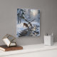 The perfect design for nature lovers or hunters. This dreamy winter design depicts a buck and a doe deer drinking from a snow covered brook with a heard of deer in the background. The evergreens are snowcovered as snow gently falls.