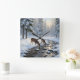 Deer drinking from a snow covered brook - square wall clock