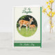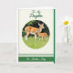 This card features a calm nature scene set inside a round window, where an adult deer with a soft tawny coat stands close to a smaller young deer in sun-dappled grass, their bodies angled toward each other like close friends ❤️. The background fades into leafy greens, giving the pair a quiet, private space that feels tender and protective without needing any extra fuss. Springlike greens fill most of the scene, balanced by warm browns and a few soft white markings on the animals’ fur. Gentle light falls across their coats, bringing out fine texture and making the grass look softly lit. A cream border frames the round image and keeps the layout neat and airy. Centered above the circle, a flowing line of text appears in deep forest green, with a second matching line centered below the circle, and both sit comfortably within the border. Thin green bands and dotted divider lines add small decorative breaks above and below the artwork, like careful accents 🌼. The round vignette sits centered on the page, with the green lettering aligned above and below it against the cream background.