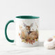 This mug has a pretty watercolor autumn image that features an adorable spotted deer fawn lying among brown and orange autumn leaves. The image is printed twice on the mug, with your name or monogram in brown between the images.