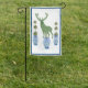 Flag bracket is super easy to assemble. There is a prong fork that goes into the ground. I dug a shallow hole to bury the prongs and still had enough height. Reinforced stitching on for the flag opening. Colors are true to the website. Mona Lisa's sign with the text is easy to read, the text is clear and not blurry.