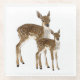 Simple brown sketch of a baby deer and mama