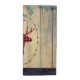 Cloth napkins with a rustic style. Designed with a deer head with antlers, made of red plaid. A fancy oval frame surrounds the image. An image of wood planks for the background image give it an outdoorsy country feel. The bottom border has a dark blue pattern with sprigs and leaves.