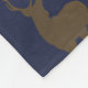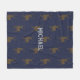 Hunting themed fleece blanket with place for his name in the center. Dark blue color with tan buck images that make a pattern over blankets that come in three sizes.