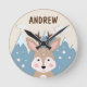 This paper cut style design features a cute deer in front of a mountain backdrop! The name is customizable! Perfect for any nursery!