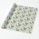 This wrapping paper has a holiday vintage look. It features a soft vignette of a deer, in the woods. The pattern is set on a light green background.