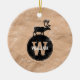 Deer Monogram Distressed Rustic Brown Kraft Paper Ceramic Ornament