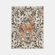 Deer on decorative oak damask pattern in brown fleece blanket