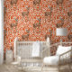 Deer on decorative oak damask pattern in dark oran wallpaper