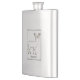 Handsome metal flask with graphics of a engraved looking deer silhouette. Personalize the name to suit your needs. Great for hunters and special occasion gift giving.