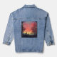 Country scene on the back of a jean jacket. Beautiful silhouette of 2 deer at a sunset. A handsome decoration for a jacket. I hope you enjoy your