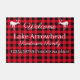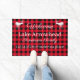 Deer wildlife decor | Red and Black Buffaloe Check Plaid.White doormat with your lake's name, your family's name, and address