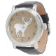 Deer Stag Silhouette on Leaf Pattern Background Watch
