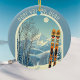 Ornament from a wonderful skiing holiday in the beautiful mountains of Deer Valley Utah ski area! This Ornament features an arch with a stunning blue-grey mountain landscape and retro ski boards in an orange tribal pattern in the foreground. The rest is in a lovely light blue tone with the location lettering in a modern font. The design is a lovely combination of retro and modern, and I hope you enjoy it!