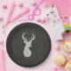 A majestic male deer with antlers graphic art drawing that looks like white chalk on a dark faux blackboard background.