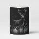 In this black and white drawing, a majestic deer with antlers is depicted standing in the middle of a peaceful and serene natural setting. The deer is drawn with intricate details and a realistic approach, capturing the essence of its wild beauty.