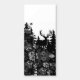 Deer emerges from pine trees and is surrounded by wildflowers in simple wildlife design.