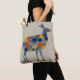 A blue-gray deer with multi-colored circles on the body creates a beautiful, modern design with an Asian influence on this tote bag.
