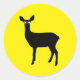 A silhouette of a deer standing sideways but looking toward the viewer. The deer has big bright white lights instead of eyes.