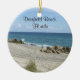 Deerfield Beach Florida Ornament shows a photo of a sandy florida beach and is fully cusomizeable and can be personalized with the bride and grooms name and wedding date.