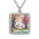 Deers in Forest Unique Art Silver Plated Necklace