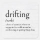 Definition of DRIFTING in black text on a whitewashed wood background.