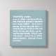 It is exactly what I was wanting for my laundry room. I ordered a 24"x24" that is 1.5" deep. So glad I ordered the deeper canvas frame size. It just looks more substantial. Also I LOVE, LOVE, LOVE the blue and white colors that were used. Those are my color scheme. It's the perfect size for the bare wall above my washer and dryer. Nice and clean looking and a great choice for a room that lacked artwork. I love the text and different fonts that were used in making this. I checked out others, but this is the layout (and color) that I liked best!