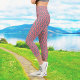Ladies Capri Leggings. Designs in a pattern of pink and grey arrows. A repeat pattern of zig-zags create a bold regular design. Colours are grey and pink.