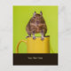 The front of this postcard features a photograph of a degu sitting on top of a yellow mug against a green background. Beneath the image is space to write your own short personal message. Degus are caviomorph rodents native to Chile but have increased in popularity in the pet world in recent years. They are sometimes referred to as Chilean ground squirrels or brush-tailed rats. Copyright © 2010 Lisa Marie Robinson. All rights reserved. It is illegal to use or duplicate this, or any of our images, without written permission.
