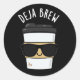 Deja Brew Funny Coffee Pun Dark BG Classic Round Sticker
