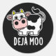 Deja Moo Funny Cow Pun Dark BG Classic Round Sticker
