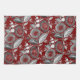 Dekorative Astern in neutralen Grautönen sind im Stil der Volksmalerei auf burgunderrotem Hintergrund gemalt.