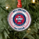 Show your state pride this holiday season with this unique Delaware 1st state Christmas ornament. It has red, white, and blue patriotic colors with a circular typography design on a white background. The text includes facts about the state, such as its name, capital, state abbreviation, region, time zone, geographic coordinates, the year of its statehood, and its resident's name. It's a great gift for those who wish to celebrate their state or for those who are feeling nostalgic about their home state.