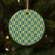 Delaware Checker Blue Gold Yellow Pattern Ceramic Ornament