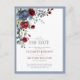Let your guests know your wedding has been delayed with this elegant, modern dusty blue burgundy floral wedding date postponement notice featuring hand painted watercolor details and hand lettered script typography. Copyright Elegant Invites, all rights reserved.