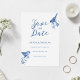 Announce your special day in style with our enchanting Delft Blue Birds Spring Save The Date Announcement. Featuring delicate Delft Blue birds and a beautifully detailed twig illustration, this announcement sets the perfect tone for your upcoming spring wedding.