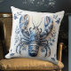 Bring coastal charm to your living space with this delft blue floral lobster pillow. The design features a white lobster adorned with intricate blue floral patterns, making it a perfect addition to beach house interiors or coastal cottage settings. Its rustic style complements nautical and minimalist decor themes.