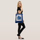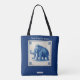A humorous, monotone, blue woolly mammoth (mammathus primigenius) in the style of a Delft tile. Customize by adding your own text.