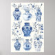 A collection of Delftware vases, characterized by their classic blue and white patterns.