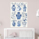Patterns: The designs include landscapes, floral motifs, and detailed scenes hand-painted with cobalt oxide.