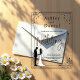 This elegant black-and-white acrylic wedding invitation is perfect for a modern wedding. The simple design features elegant black calligraphy, a chic black frame, and a bride-and-groom illustration on a clear transparent background. The invitation card includes the wedding details on the back instead of paying for a separate enclosure card.