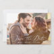 This delicate black calligraphy horizontal dark photo save the date card is perfect for a modern wedding. The romantic minimalist design features lovely and elegant black typography on a white background with a clean and simple look.