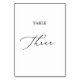This delicate black calligraphy table three table number is perfect for a modern wedding. The romantic minimalist design features lovely and elegant black typography on a white background with a clean and simple look. The card prints on the front and back (double-sided). Other table numbers in the collection are sold separately.