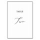 This delicate black calligraphy table two table number is perfect for a modern wedding. The romantic minimalist design features lovely and elegant black typography on a white background with a clean and simple look. The card prints on the front and back (double-sided). Other table numbers in the collection are sold separately.