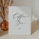 This delicate black calligraphy wedding coffee bar pedestal sign is perfect for a modern wedding. The romantic minimalist design features lovely and elegant black typography on a white background with a clean and simple look.