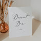 This delicate black calligraphy wedding dessert bar pedestal sign is perfect for a modern wedding. The romantic minimalist design features lovely and elegant black typography on a white background with a clean and simple look.
