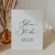 This delicate black calligraphy wedding glow sticks pedestal sign is perfect for a modern wedding. The romantic minimalist design features lovely and elegant black typography on a white background with a clean and simple look.