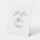 This delicate black calligraphy wedding let love glow pedestal sign is perfect for a modern wedding. The romantic minimalist design features lovely and elegant black typography on a white background with a clean and simple look.