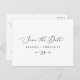This delicate black horizontal save the date postcard is perfect for a modern wedding. The romantic minimalist design features lovely and elegant black typography on a white background with a clean and simple look.