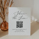 This delicate black share the love QR code wedding pedestal sign is perfect for a modern wedding. The romantic minimalist design features lovely and elegant black typography on a white background with a clean and simple look.